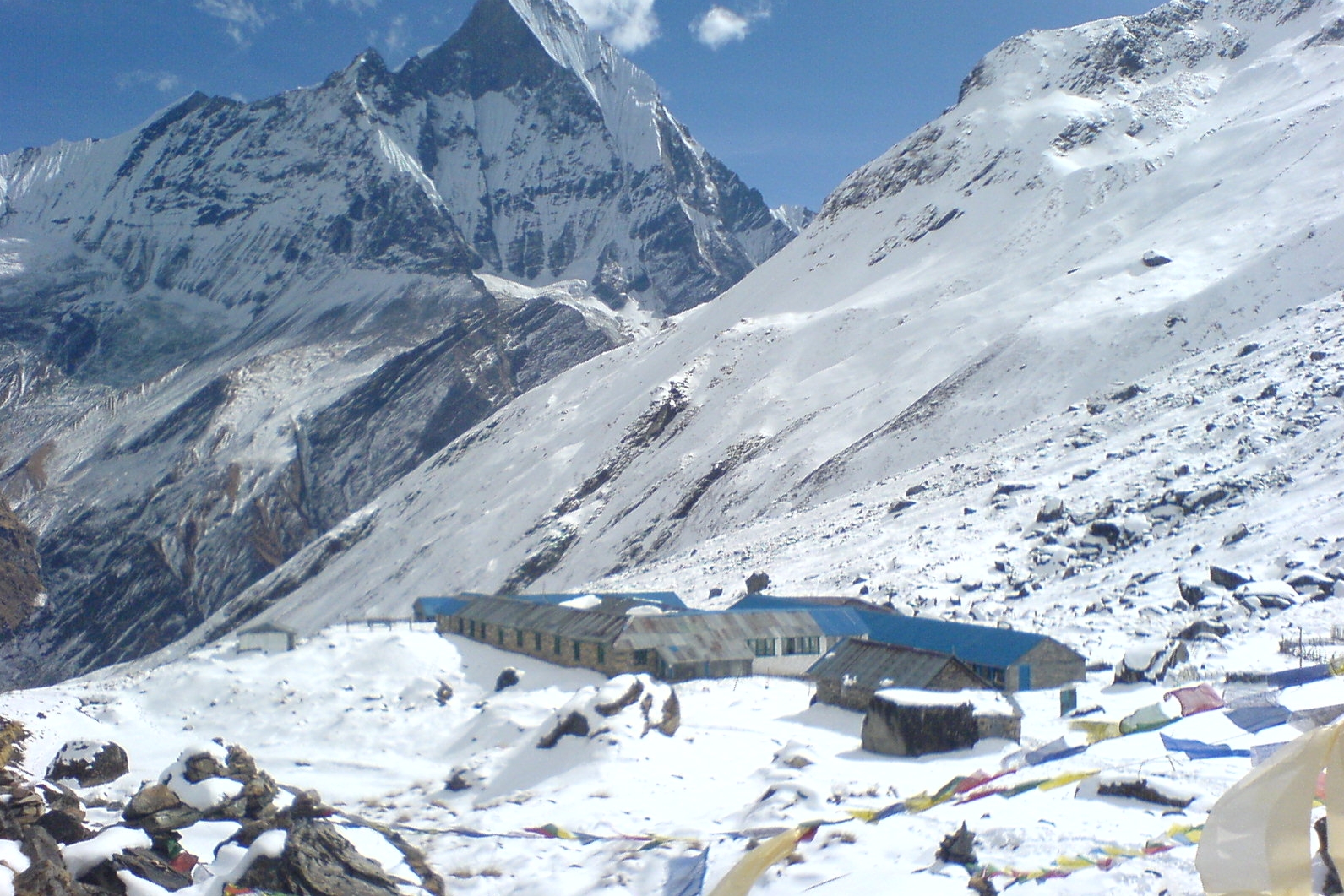 Machapuchhre Base Camp to Annapurna Base Camp (4131m) – 2and Half hour Machhapuchhre Base Camp which is often known as Annapurna Sanctuary as the area is surrounded by mountains, we trek further two hours to reach Annaupurna Base Camp at the elevation of 4130m. From Annapurna Base Camp, you can observe some of the awe-inspiring views of mountains. We stay overnight at a guesthouse.