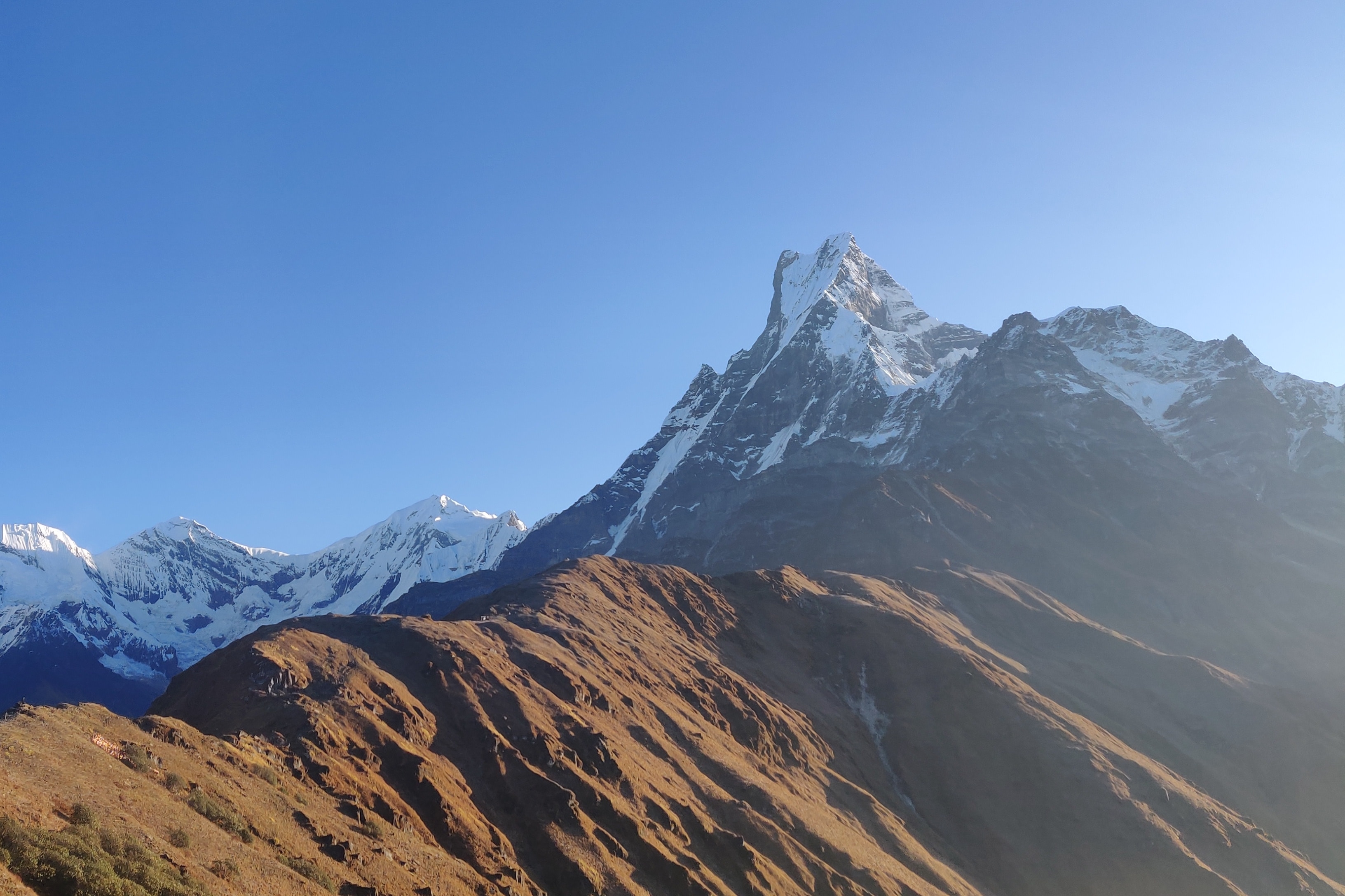 You will experience the thrill of walking in the total wilderness of thick forests covered with rhododendron and oak trees. Mostly the trees are covered with mosses and lichen. Occasionally the thick foliage opens into small windows, from which you will stare at the stunning sceneries of in the direction of Fishtail (Machapuchre). On the right side far below lies the Modi Khola Valley. Then you will be Low camp of the northern face of Mt Fishtail and trek one hour more you will reach Badal danda there is newly open nice and clean guest houses.